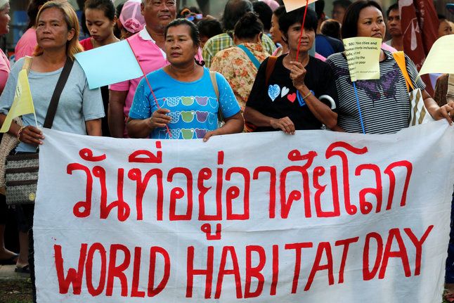 Hundreds of protesters took to the streets of Bangkok for World Habitat Day today calling on the junta to address land rights and housing needs in what police and organizers are calling one of the biggest demonstrations since the May 2014 coup.
