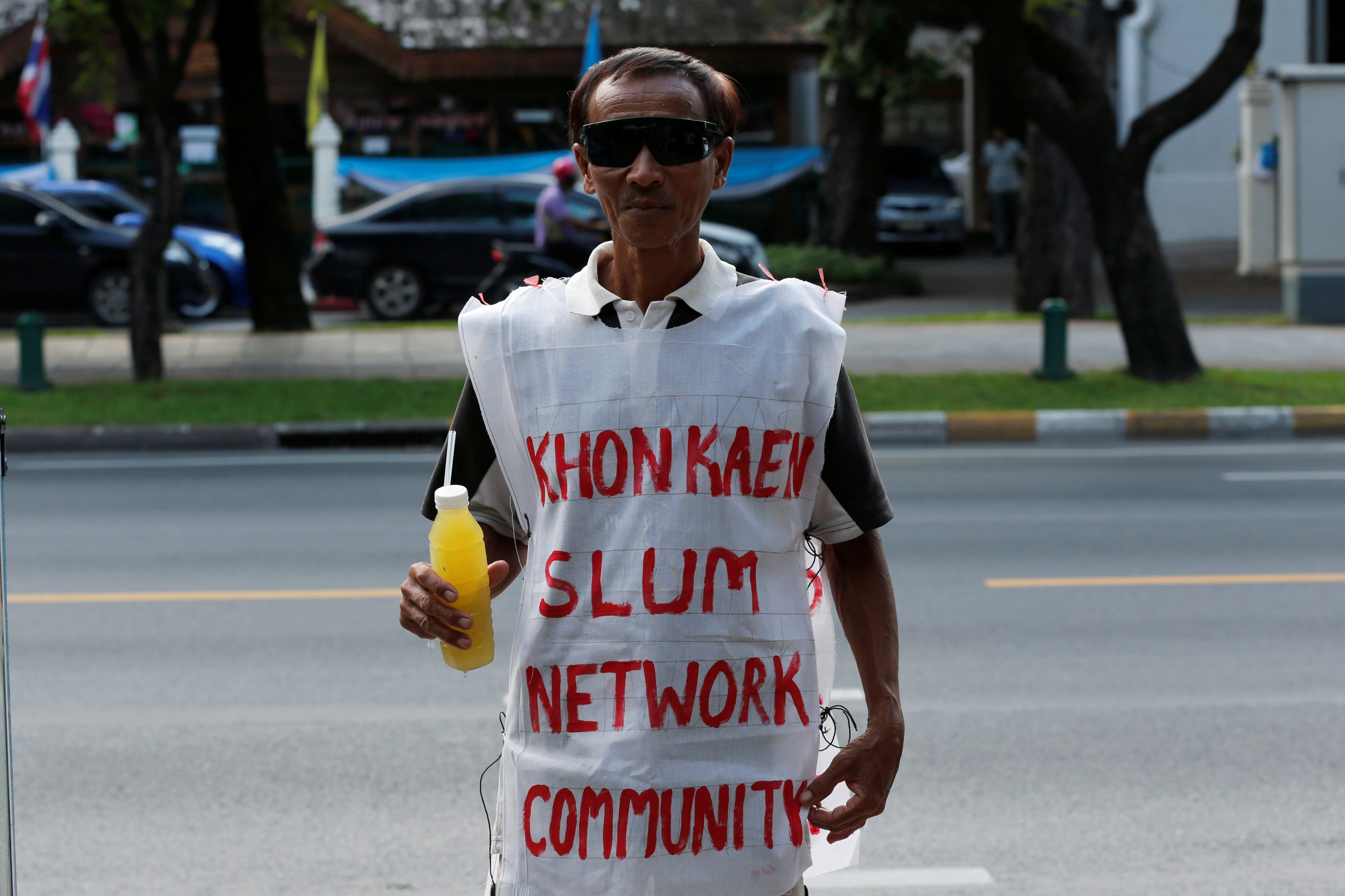 “If we keep kicking the poor off government land, we won’t have anywhere to live or make a living,” he said, as protesters waved flags and signs near the UN building.