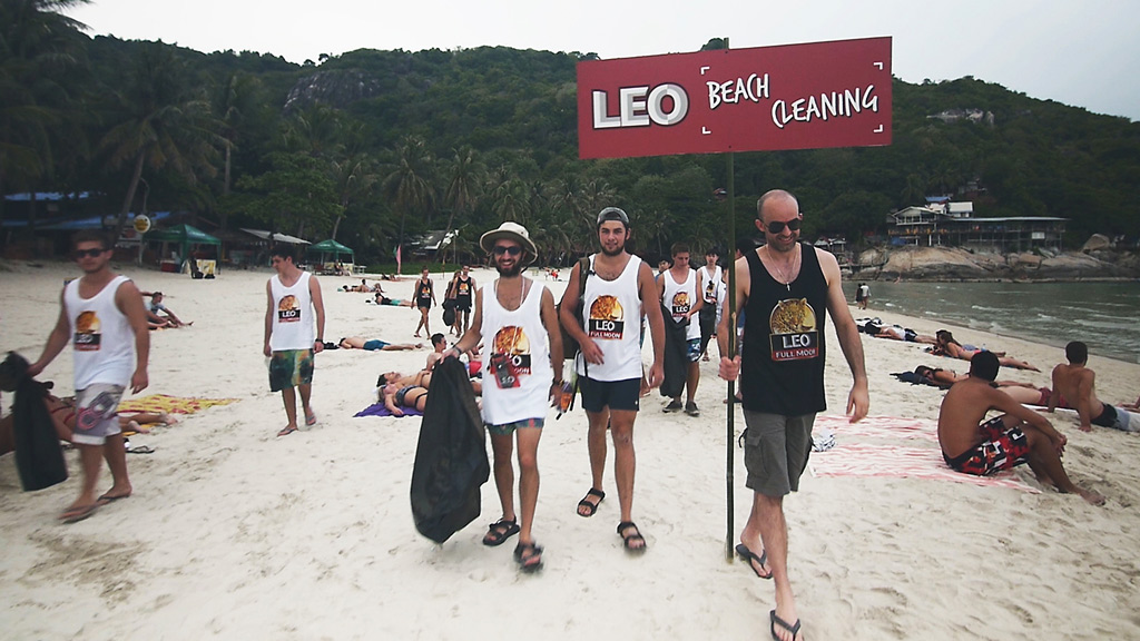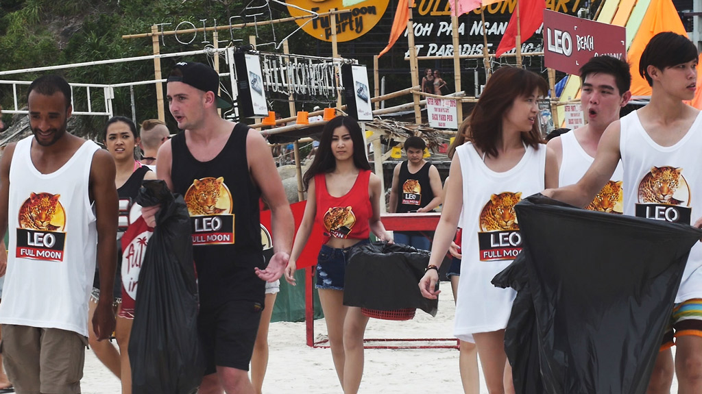 There was more to the extravaganza than free beers, free merch, and great music. To add an extra, positive element to the affair, Leo hosted a beach cleanup to keep Koh Phanang pristine. Leo Full Moon’s Beach Cleaning Crew members spruced up the beach for an hour before the bash and earned even more free brews.