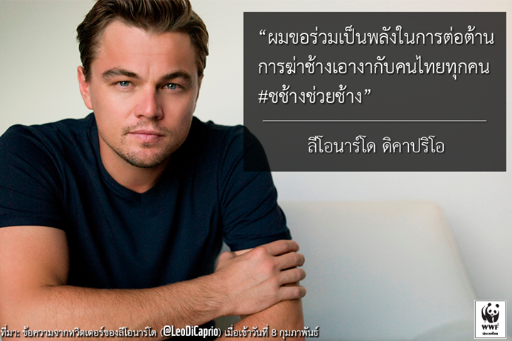 Titanic star Leonardo DiCaprio showed his support for a Thai wildlife campaign to stop the ivory trade with a tweet to his 12 million followers yesterday.