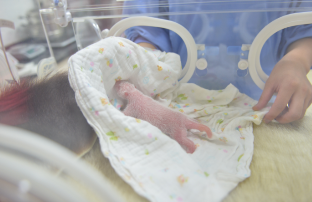 The staff has successfully removed only the first baby from Lin Bing. The baby is a female and weighs 200 grams, according to ChinaPanda.org