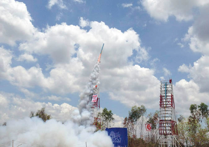 ABOVE: A rocket launches at the Yasothon Rocket Festival in May. Photo: Coconuts Media