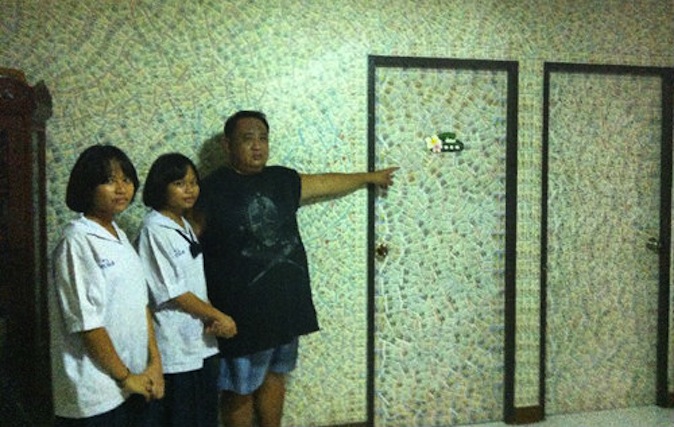 One Pathum Thani man decided to assemble them into a mural of his shame to remind himself never to make a bet again.