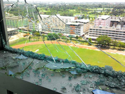 Pol Lt Col. Chinkrit Thiwongkam says the grenade hit the office of Asst. Prof. Walaiporn Nakpoan located on the 12th floor of the building, damaging two windows. No injuries were reported.