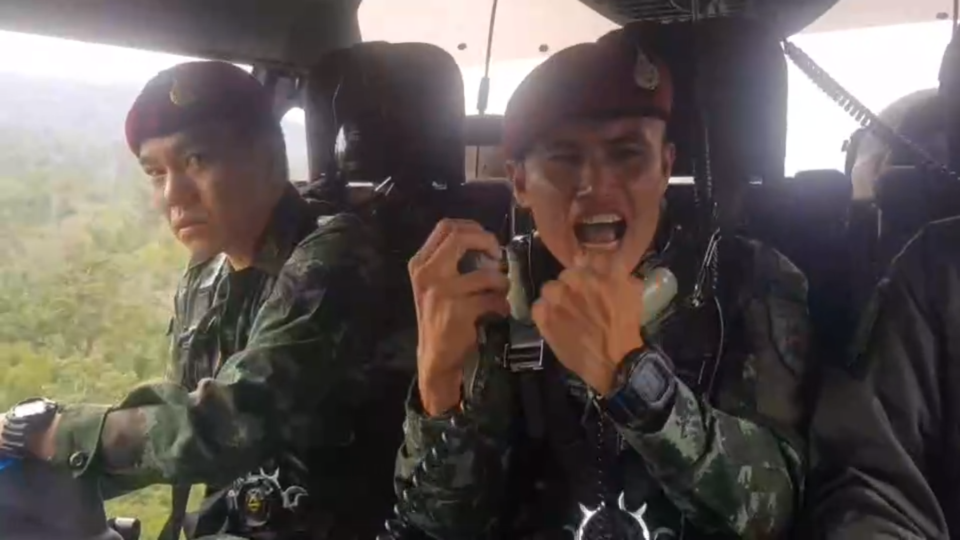 On the sixth day of a search and rescue mission seeking four foragers who’d disappeared into the forest, officers conducting an air search erupted with joy after spotting them – and their three dogs –- in the middle of the Tung Salang Luang National Park.