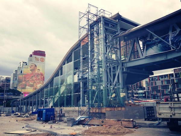 But now, as seen in a photo taken by Coconuts fan and Builk app co-founder Patai Padungtin, the powers that be are constructing what looks like a more civilized skywalk and escalator to connect the two stations.