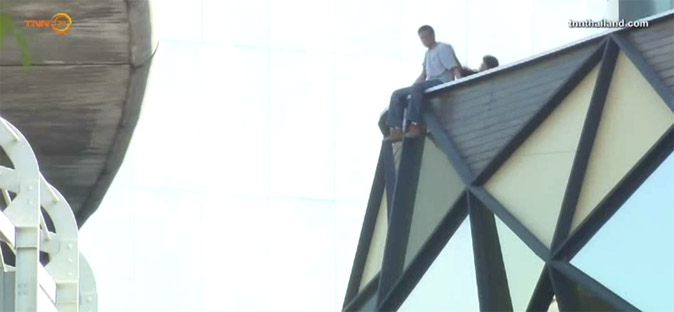A 39-year-old distraught father from Chonburi climbed atop Victory Mall in Ratchathewi this afternoon and proceeded to cry.