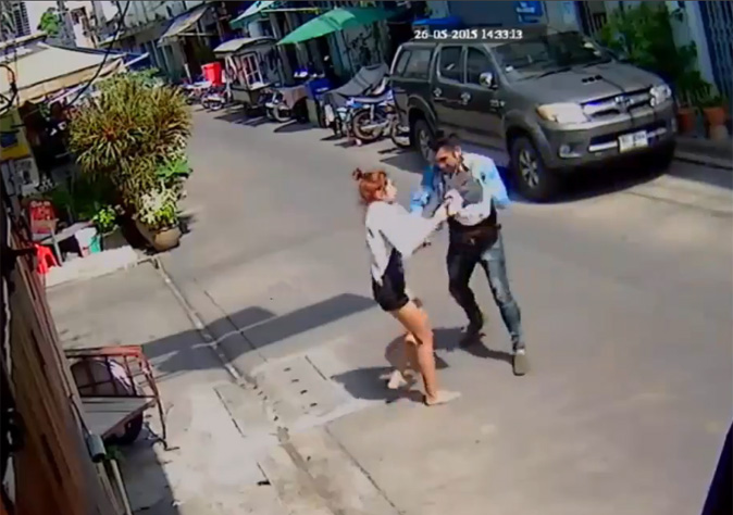 In dramatic footage spreading online, a man identified by police as Worachai Leelawanlop, 33, runs down Wanida Kakaew, a 20-year-old fermented sausage vendor, and stabbed her repeatedly in front of her house Tuesday in the middle Soi Samsen 41, where she lives.