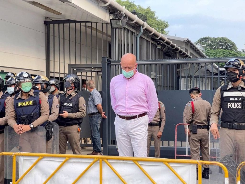 After protestors reached the embassy, one read a statement and said the rally was to “raise voices” against the country’s monarchy.