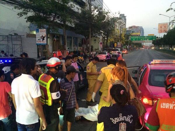 According to investigators, a friend of the deceased, Bodin Popradit and four other friends visited an entertainment complex on Ratchada Road where they got into a fight with another group of visitors.