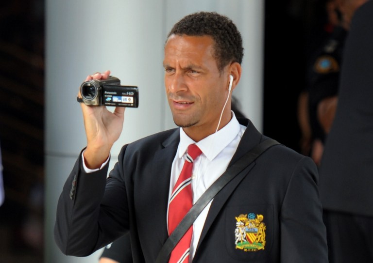 Rio Ferdinand records his arrival at the Four Seasons Hotel in Bangkok. Photo: Pornchai Kittiwongsakul / AFP