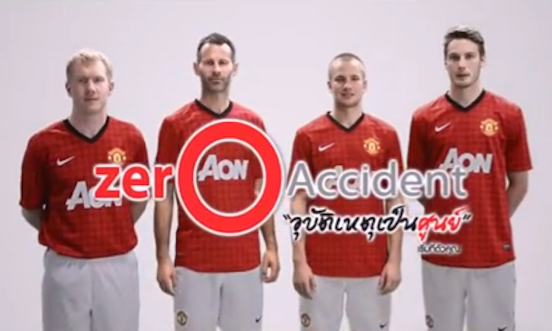 Manchester United’s Ryan Giggs, Paul Scholes, Tom Cleverley and Nemanja Vidic talk into the camera and give their heartfelt message, saying that all they want is zero accidents this year over the Songkran period. To really send the message home they also hold up a Manchester United shirt with the number zero on the back. Manchester United’s video.