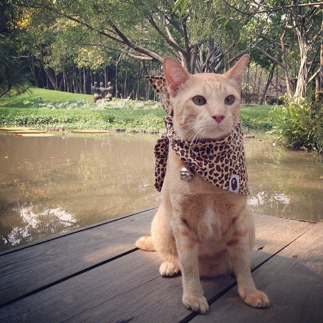 Ever since Asoke Cat was adopted by a nice cat lady, he seems to have adjusted to a more peaceful lifestyle, leaving us to sponge up the occasional photo of him in fancy collars.