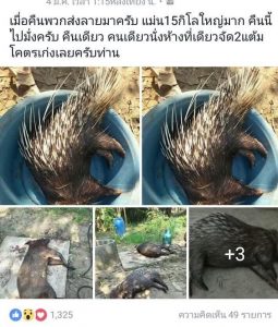Thai officials are now trying to find eight people who posted pictures of dead animals — including one of crab-eating macaque, Malayan porcupine, leopard cat, great barbet, gibbon each and a number of eagles and flying squirrels.