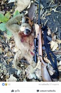 Not all of the images are illegal, as some of the species killed were not endangered or protected. However, hunters in Thailand need licenses to have guns and bullets and must do their deeds in certain areas and restrict themselves from killing many species.