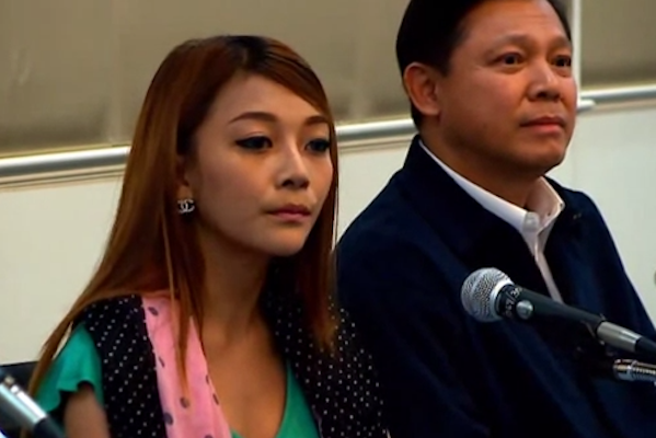 During a press conference with police honcho and former Bangkok governor candidate Pongsapat Pongcharoen at the Office of the Narcotics Control Board yesterday, Kwanjai, aka Roxy Maxim, begged for forgiveness from the public, insisting that she has stayed clean for over six years and that her substance offer to the boy was acted just for fun.