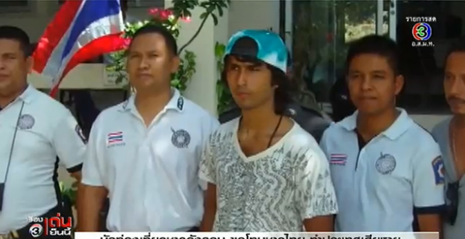 The Brit backpacker who was reported missing by his family was presented to a police press conference in Krabi today to apologize to the Thai people.