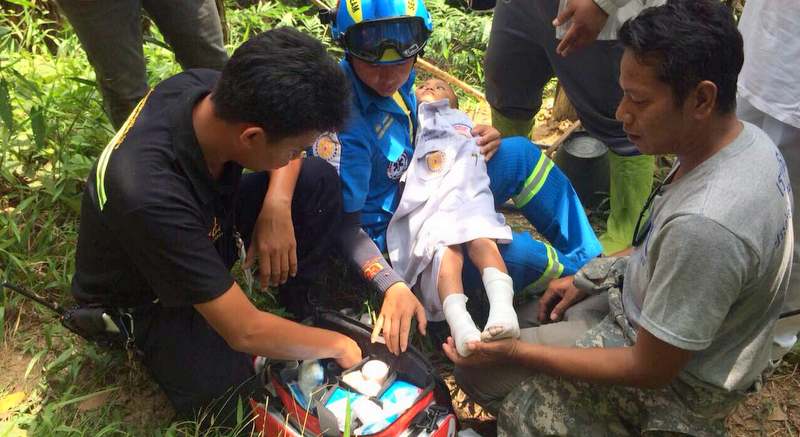 Kusoldharm rescue worker Phattarawut Akanitthakorn, who was among the 30-strong search effort, explained that DJ’s family had asked them to search the forest after getting a sign from a neighborhood dog.