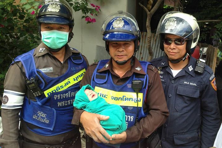 Led by Bangkok’s famous “officer mom” Mana Jokkoksoong, the policemen rushed to a home on Payathai Road yesterday after receiving a call stating that a woman had gone into labor and it was simply too late to take her to hospital.
