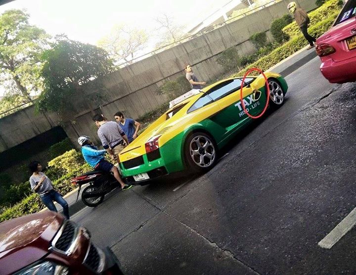 Everyone’s favorite Lamborghini taxi was wounded by motorcycle, with an image of the incident shaping up to be the most exciting thing on the internet today.