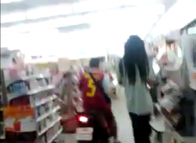 The event happened when said teenager was dared by his group of friends, so he says, to enter the convenience store on his motorbike. The biker drove in and made a trip around the store amidst the confused and irritated stares of other customers and staff.