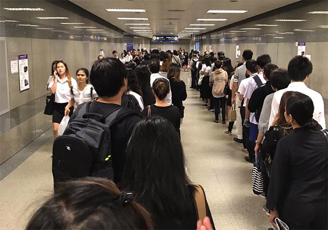When commuters tried to scan their cards or drop their coins they found that the turnstile gates would not open and were then told to line up to get the paper vouchers instead, reported Bangkok Post.