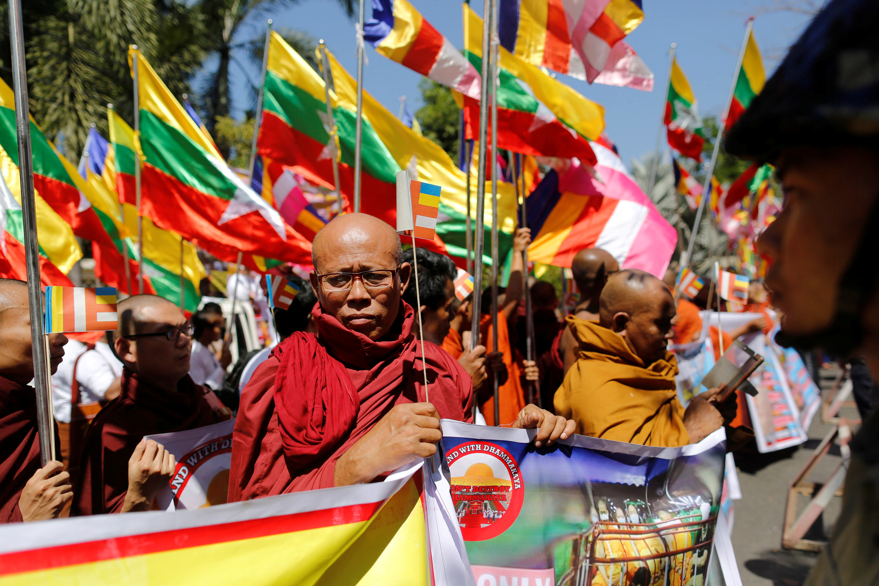 U Wirathu, a prominent member of a nationwide nationalist network known as Ma Ba Tha, also led a demonstration on Thursday in Myanmar’s central city of Mandalay over the Thai government crackdown, his Facebook page showed.