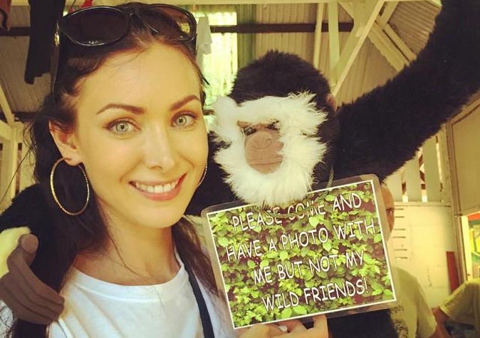 Glebova claimed she was completely ignorant of all this when she saw the cute gibbon and happily took a photo with it on Koh Phi Phi last month.