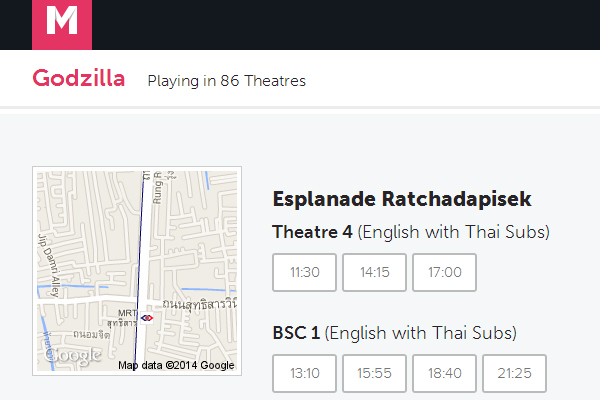 We just found out about Moveedoo.com, a website made by Bangkok-based design group Faculty that neatly organizes today’s showtimes and theaters and thought we’d share it with you.