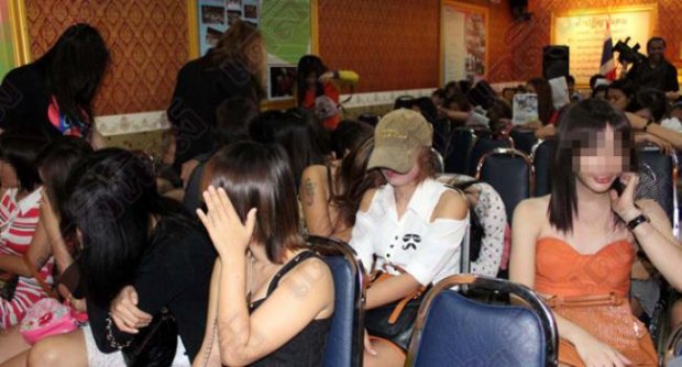 At 11:30PM yesterday, police arrested three men, 53 women and 16 transvestites for engaging in prostitution across Bangkok.