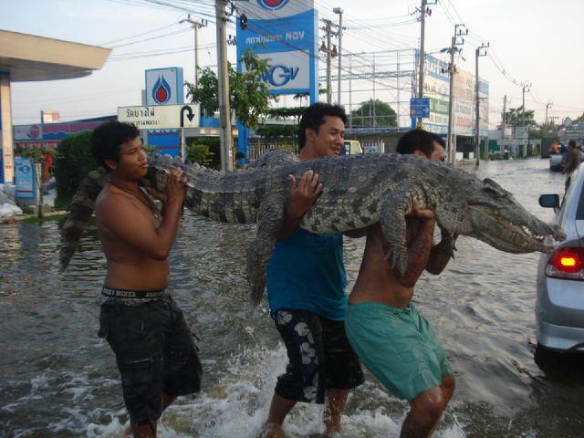 Residents in the Bang Bua Thong district of Nonthaburi – already one of the worst flooded areas around Bangkok – now have to worry about crocodiles on the loose as well.