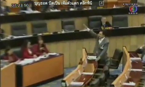 Saksith Saiyasombut at Siam Voices reported that Boonyod was angry at being interrupted by House speaker Somsak Kiartsuranont, who wanted to end the session.
