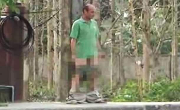The incident began when police in Chiang Rai’s Banmai market area received calls that a farang was standing on a sidewalk with his pants around his ankles, doing some sort of strange dance.