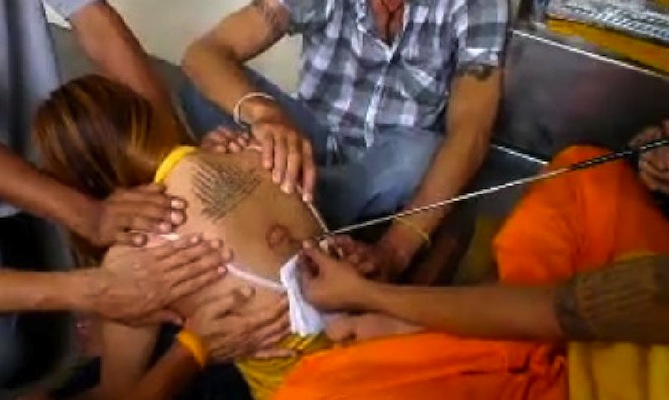 The reason? The tattoo is being given by a monk.