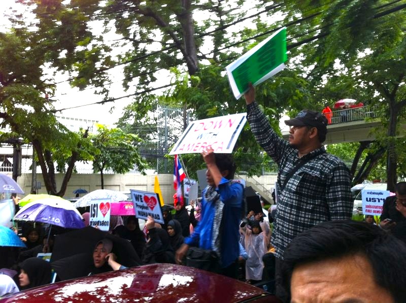 Thai Muslims today joined the chorus of worldwide anger at an American-made anti-Islam film by protesting today at the U.S. Embassy in Bangkok.