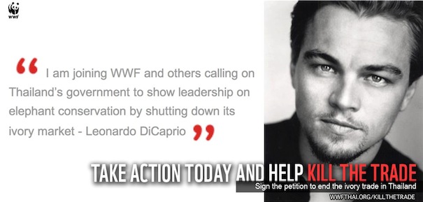 No less of a Hollywood heavy hitter than Leonardo DiCaprio has joined the World Wildlife Fund campaign to ban the ivory trade in Thailand.