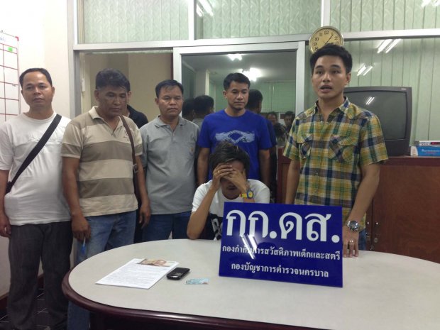 Police from the Children, Women, and Family Protection unit arrested a 32-year-old man yesterday after an undercover prostitution sting near Samrong Market in Samut Prakan.