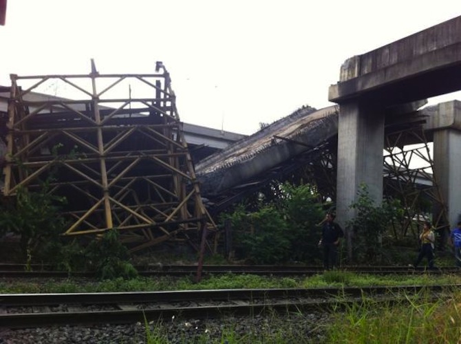 The scandal-ridden Hopewell Project has never given Bangkok residents a lot of hope. Another mishap in the project’s saga happened today when part of the unfinished highway collapsed during rush hour.