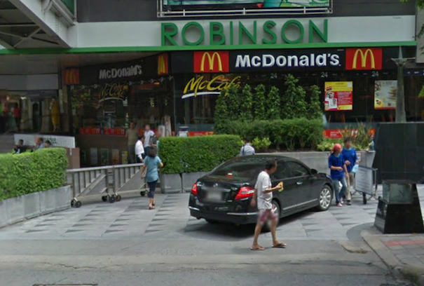 Taxi driver Mr. Suriya Sipumkan, 45, collided with the McDonald’s employee’s motorbike while turning onto Sukhumvit Soi 17 and both men began to fight in the Robinson’s parking lot.