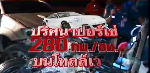 The crash happened when Chaifa, who was driving a Porsche, crashed into the back of Sakdipat’s Toyota Fortuner at high speed on the tollway in front of the Daily News office in Bang Khen district, Matichon reported. He was found to be traveling 260-280kmh in 6th gear at 6,000 RPMs by police investigators who examined 16 CCTV cameras. Chaifa died instantly in the crash while Sakdipat, who wasn’t wearing a seatbelt, was also killed. Sakdipat was traveling at 40kmh in his Fortuner.