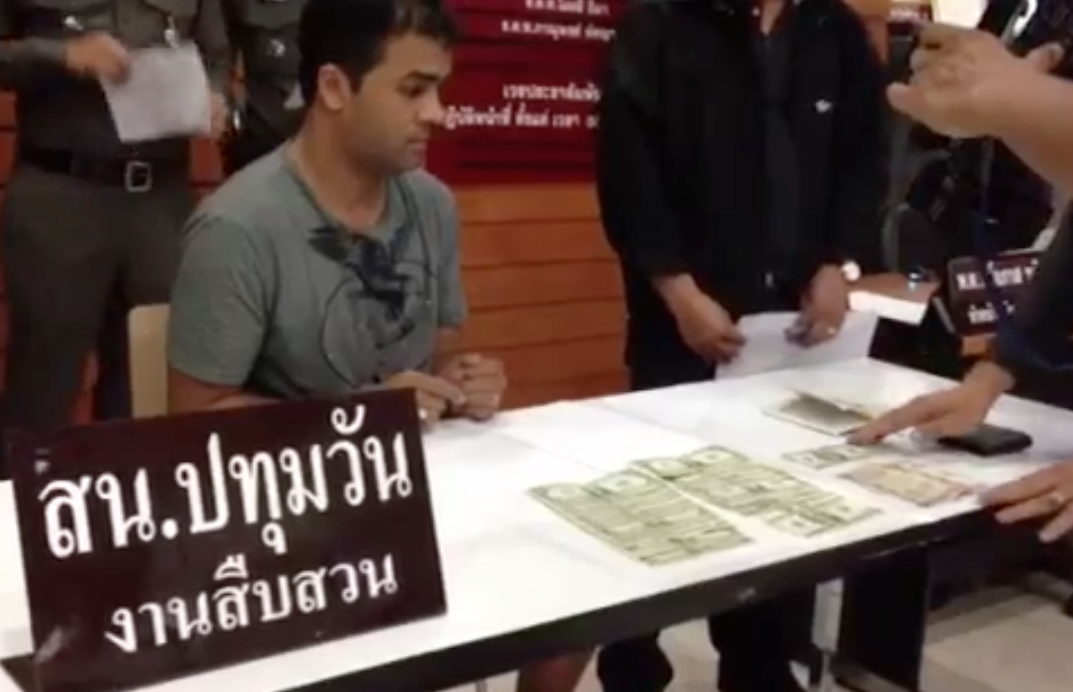Police busted Yusoop Yildish and discovered USD270 and THB3,000 in cash in his possession. They said that Yusoop would ask to see foreigners’ bank notes, then quickly swap them out with fake notes of his own design.