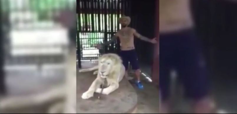 A British tourist was recently snapped at by a 400-pound lion when he entered the chained animal’s cage to pose for an ill-advised photo that he’ll probably try to use on a dating site.