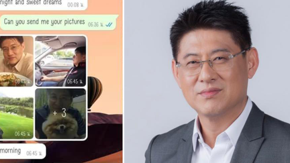 The post included screenshots of a WhatsApp chat in which the romance scammer sent multiple photos of Sorayuth. “Good morning,” the person identified in the chat as Tao Chung wrote, attaching multiple photos of Sorayuth including one with a meal and another with a pomeranian.