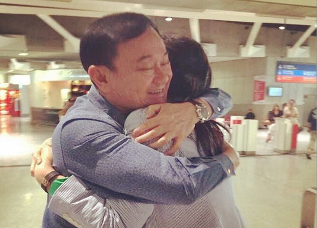 A photo of fugitive former Prime Minister Thaksin Shinawatra embracing an unidentified woman with a ponytail resembling deposed former Prime Minister Yingluck Shinawatra was posted to Instagram today by Panthongtae Shinawatra, Thaksin’s eldest son.