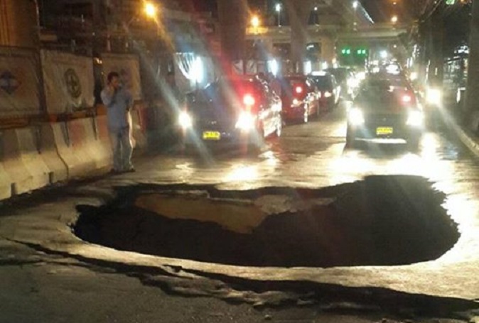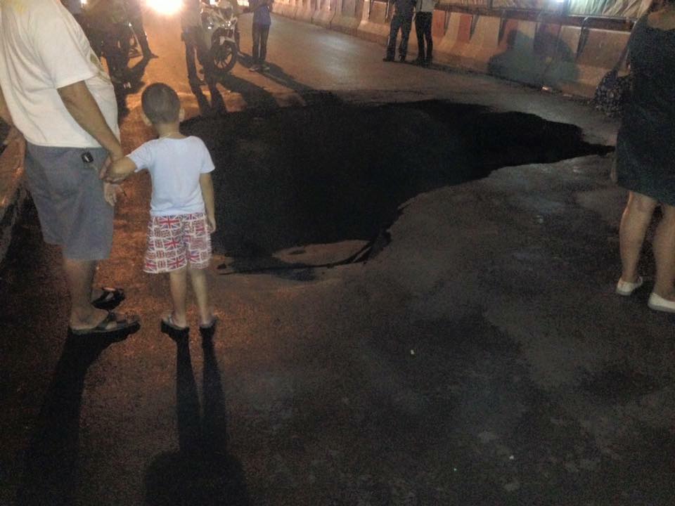 Luckily, no accident was reported after the road surface collapsed into a hole about a meter deep at 10pm.