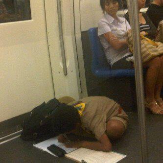 Long before it became a place one could hardly find a place to stand – let alone pole-lean and phone-gaze – one young Thai scout demonstrated his diligence on public transportation.