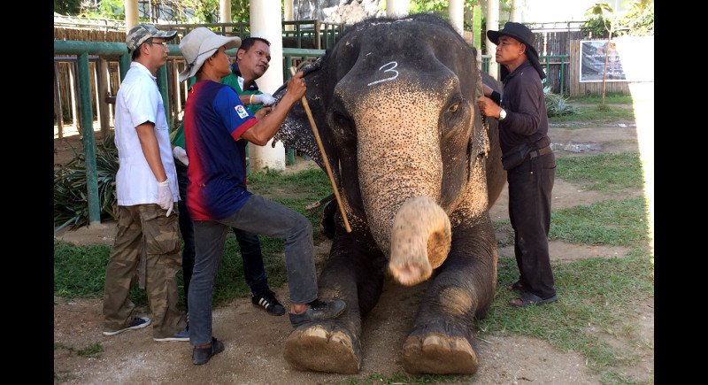 Officials from the National Park, Wildlife and Plant Conservation Department (DNP) took DNA samples from 67 elephants yesterday, including those that perform at the Phuket FantaSea attraction in Kamala, as part of a drive to crackdown on elephants trafficked onto the island.