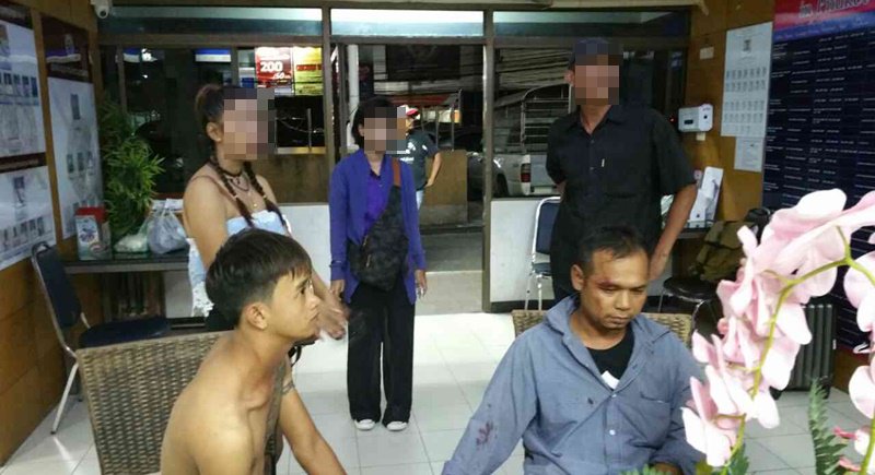 When police arrived at the scene they found a crowd of people surrounding two men who had bruises on their faces.