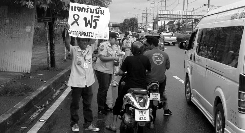 Kusoldharm rescue workers at Baan Thareua in Thalang, Phuket, have handed out more than 1,000 handmade black ribbons to residents who do not have black attire to wear every day so that they can use them as symbol of mourning during the mourning period of HM the King who passed away last Thursday