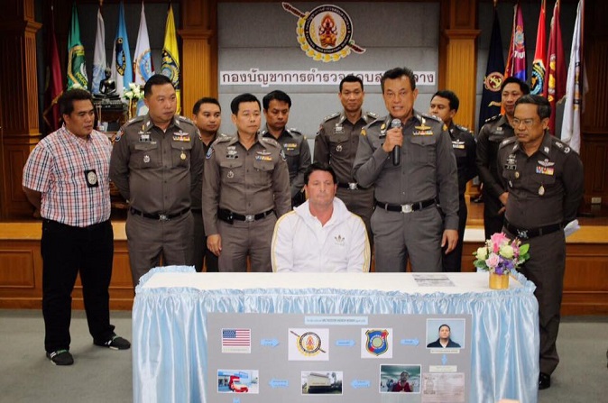 An American man wanted in New York state for internet fraud was paraded before the press by the Central Investigation Bureau in the Pathumwan district yesterday.